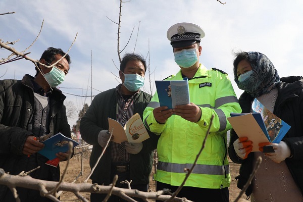 近日,禮縣公安局交警大隊在做好疫情防控工作的同時,組織民警走進田間地頭,有針對性的開展交通安全宣傳教育,民警通過口頭提示、發(fā)放資料,講解發(fā)生在身邊的真實案例,面對面向村民們講解農用車輛違法行為的危害性,使農村群眾認識到交通違法行為的嚴重危害性,進一步提高交通安全意識,自覺抵制交通違法行為。通訊員 楊含龍 攝