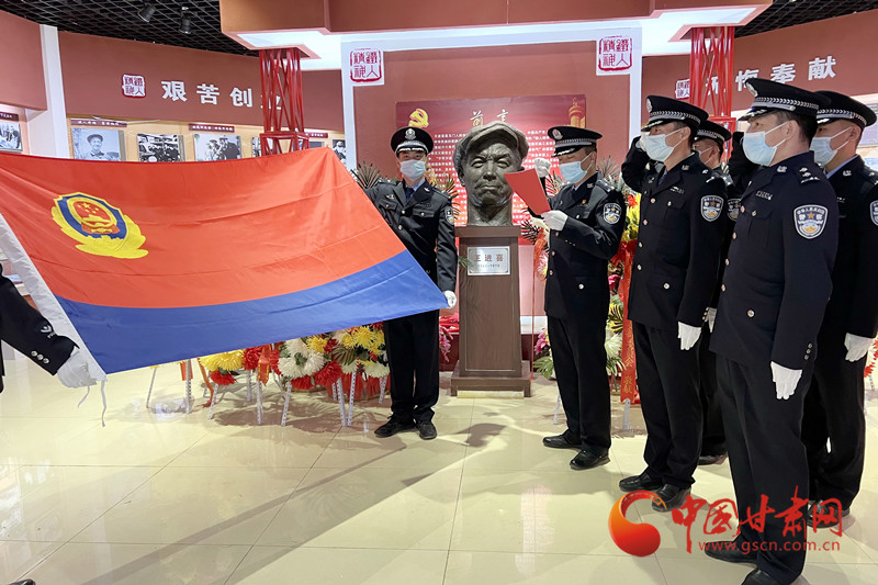 武威鐵路公安處民警在烈士紀(jì)念碑前重溫入警誓詞