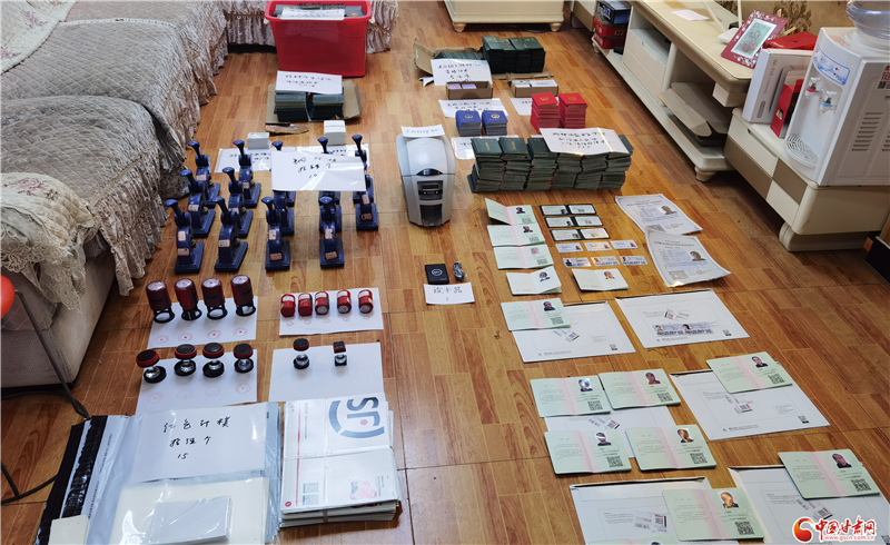 至今年3月,專案組陸續(xù)抓獲涉嫌非法利用信息網絡、偽造國家證件犯罪嫌疑人陳某及嫌疑銷售假證人員20余人,現場繳獲制證工具1套、假冒政府機關鋼制印模14臺、原子印模15枚,扣押假冒特種設備作業(yè)從業(yè)人員、道路運輸從業(yè)人員等10種從業(yè)資格證3660本,查明安徽、四川、云南、山東、福建等地購買偽造的國家機關證件人員11457名。