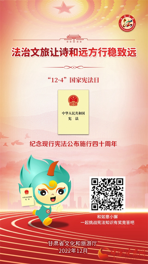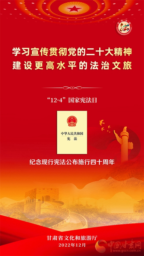中國甘肅網(wǎng)12月7日訊 (本網(wǎng)記者 張?zhí)m琴)自12月4日國家憲法日暨憲法宣傳周啟動以來,我省各地開展了形式多樣的宣傳活動,為深入學(xué)習(xí)宣傳貫徹黨的二十大精神,不斷增強人民群眾法治意識,形成全民維護憲法的濃厚氛圍,同時加強文化和旅游的法治宣傳教育,省文旅廳近日開展了國家憲法日暨憲法宣傳周系列活動。