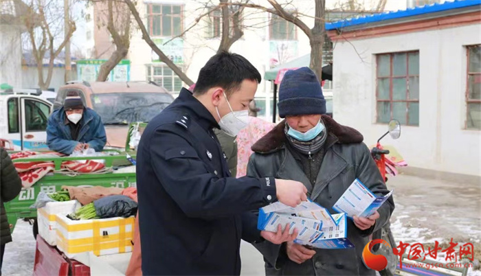 12月17日,玉門(mén)市公安局民輔警走上街頭,向群眾開(kāi)展反電詐宣傳。