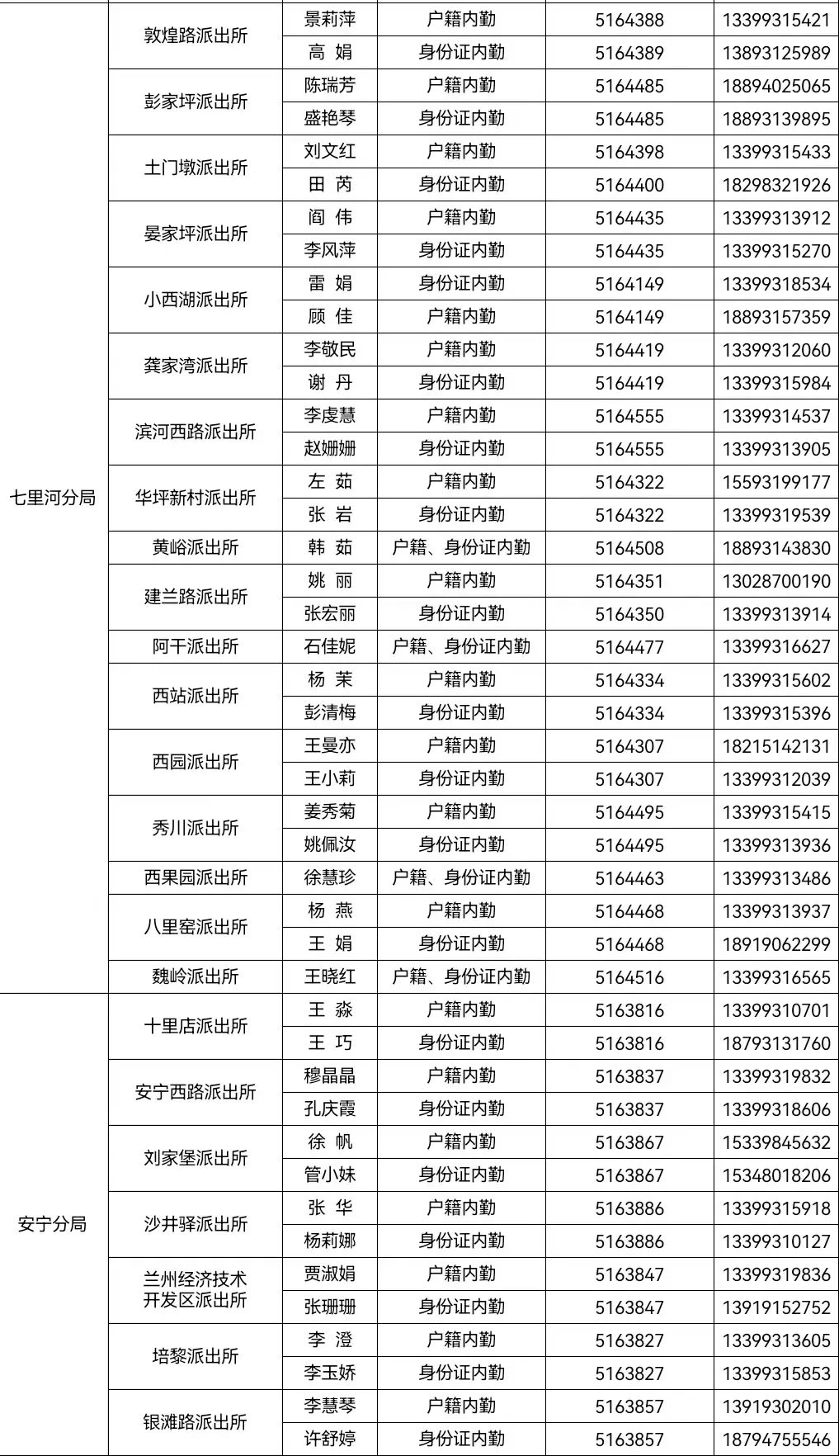 為切實(shí)滿足大量務(wù)工、經(jīng)商、就學(xué)人員陸續(xù)返鄉(xiāng)回家辦理戶籍、身份證業(yè)務(wù)的實(shí)際需要,今年春節(jié)期間(1月21日至27日),蘭州市公安局111個派出所戶籍窗口將為辦事群眾提供“網(wǎng)上辦理+預(yù)約服務(wù)”,有辦事需求的群眾請登錄“甘肅公安政務(wù)服務(wù)平臺”或撥打公布的電話提前預(yù)約辦理。