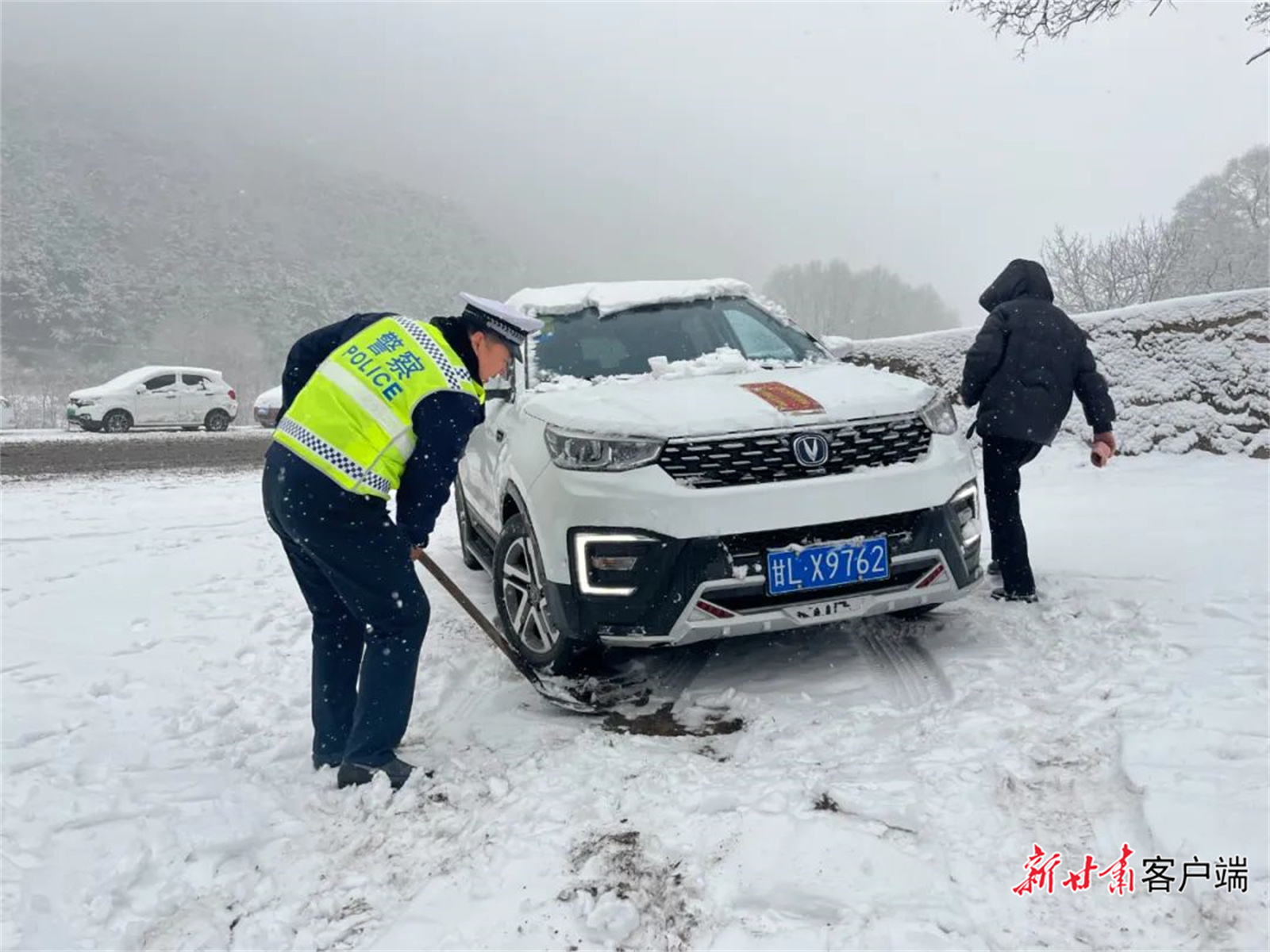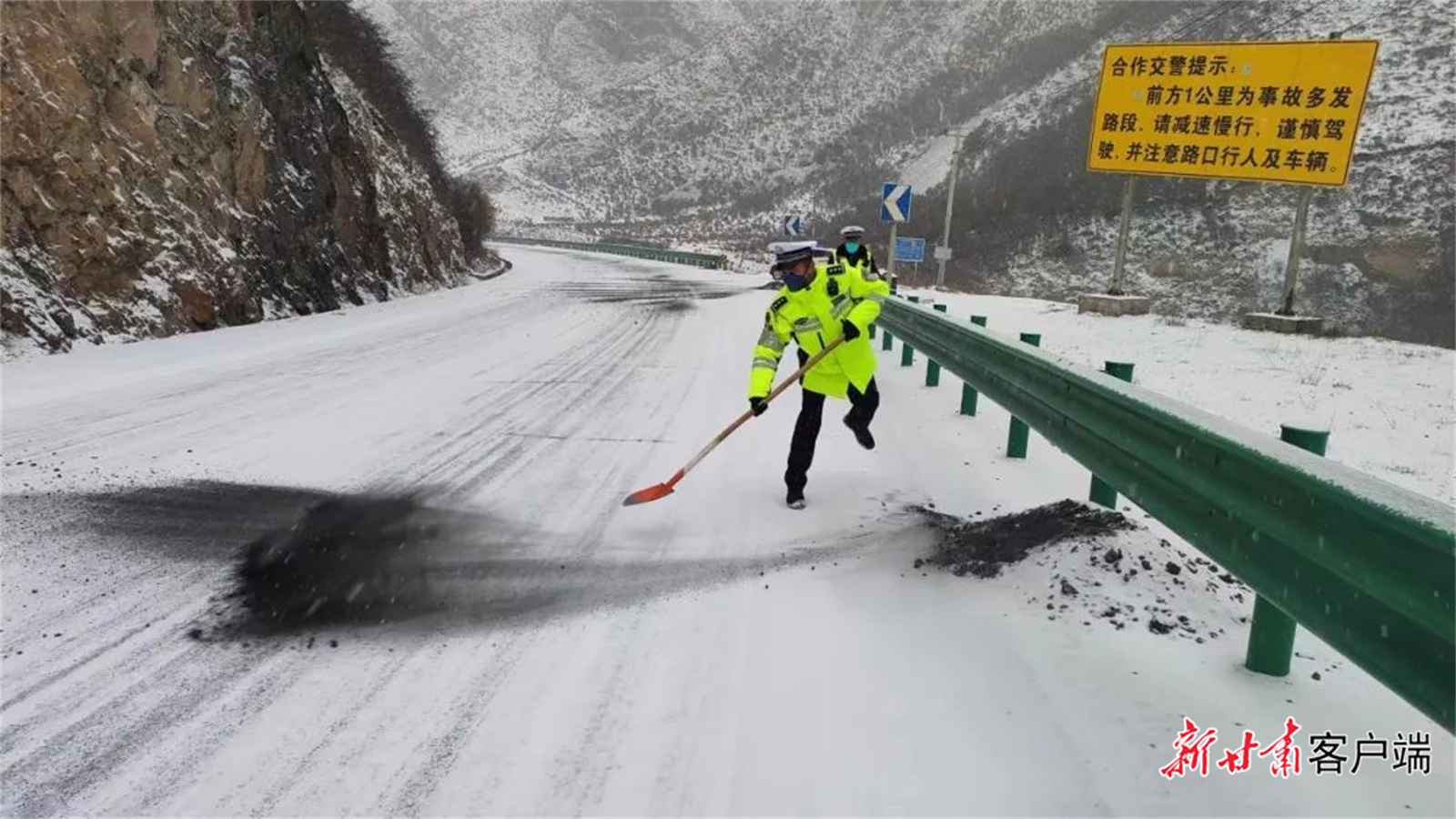 新甘肅客戶端訊(新甘肅·每日甘肅網(wǎng)記者 萬及敏)2月8日上午,甘肅多地出現(xiàn)降雪天氣,部分道路出現(xiàn)積雪結(jié)冰現(xiàn)象。為最大限度保障群眾出行安全,預(yù)防和減少道路交通事故的發(fā)生,全省公安機關(guān)1.2萬公安民輔警奮戰(zhàn)一線,加大重點路段巡邏管控力度,采取預(yù)警提示、除冰、引導(dǎo)車輛減速慢行、封閉道路、幫助群眾推車等措施,嚴(yán)防交通事故發(fā)生,為群眾的平安出行保駕護航。