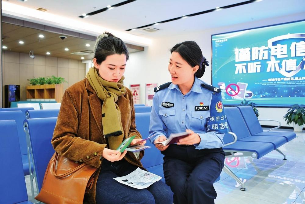12月4日上午,蘭州市公安局出入境辦證大廳輔警方海燕向市民介紹出入境業(yè)務(wù)簡(jiǎn)化辦理流程等事項(xiàng)。新甘肅·甘肅法治報(bào)記者張瑞軍攝
