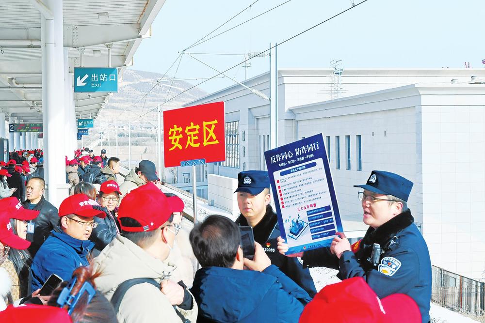 記者了解到,這批務(wù)工人員來自定西市各縣區(qū),既有返崗務(wù)工人員,也有新聘務(wù)工人員。為保障此次高鐵務(wù)工專列順利開行,蘭州鐵路公安處定西北站派出所積極與定西北車站、客運(yùn)部門通聯(lián),專門開辟“綠色通道”,暢通進(jìn)站、安檢、檢票等進(jìn)站環(huán)節(jié),劃定專門候車進(jìn)站區(qū)域,同時增派警力逐一引導(dǎo)務(wù)工人員有序進(jìn)站,幫助提拿大件行李、講解防范電信詐騙小妙招,用心用情保障務(wù)工旅客乘車安全。