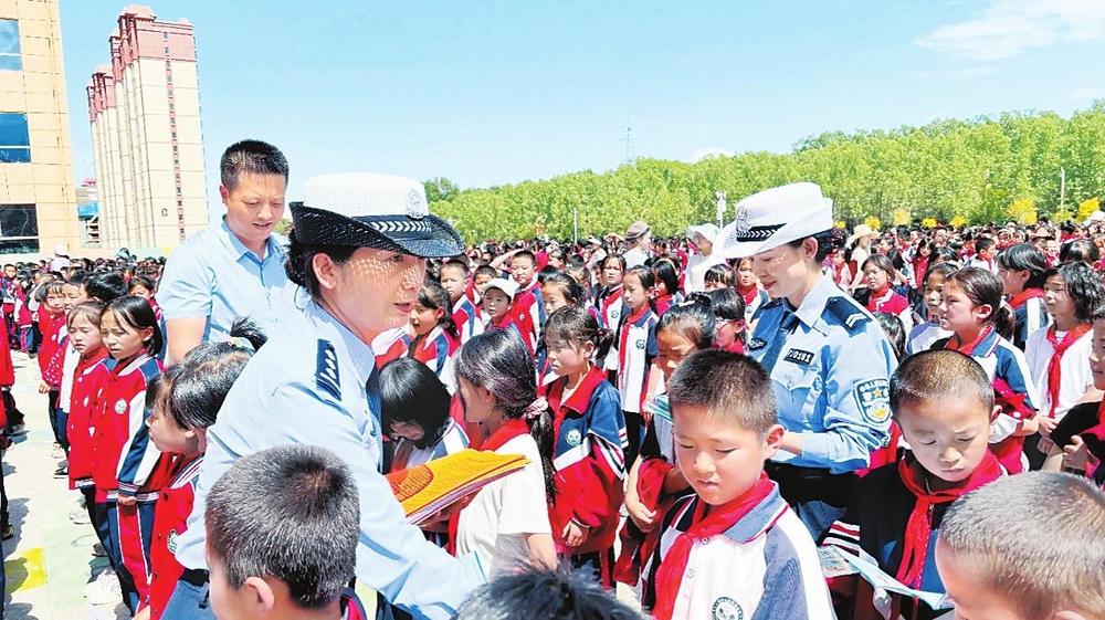 民警向?qū)W生發(fā)放宣傳資料。6月26日,積石山縣公安局交警大隊(duì)民警走進(jìn)城西小學(xué),開(kāi)展“知危險(xiǎn)會(huì)避險(xiǎn)”交通安全宣傳教育活動(dòng),給學(xué)生們上了一堂暑期交通安全課。 新甘肅·甘肅法治報(bào)通訊員趙小紅攝