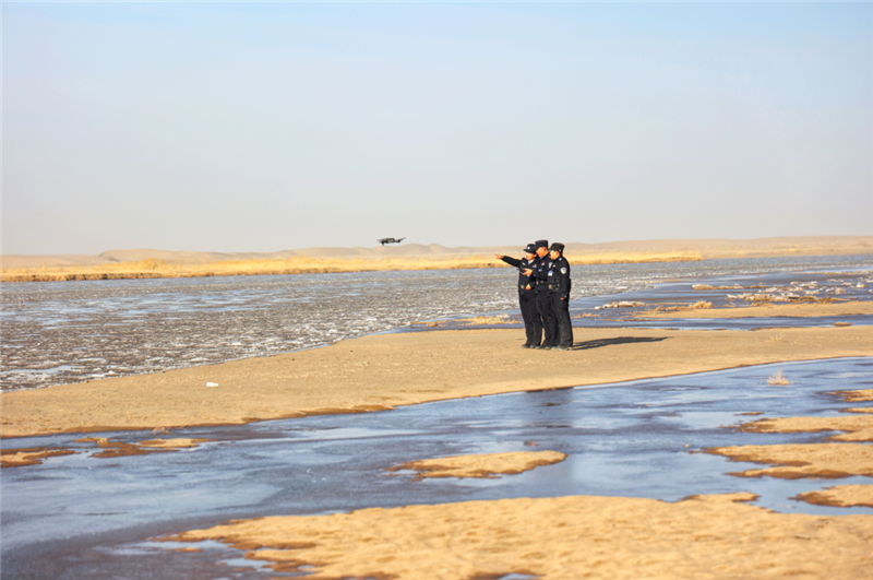 ▲金塔縣公安局城關(guān)派出所民輔警深入轄區(qū)生態(tài)保護區(qū)開展車巡、步巡、無人機巡,構(gòu)建起全域覆蓋、空地聯(lián)動、精準(zhǔn)高效的生態(tài)安全防控體系,為織密生態(tài)保護網(wǎng)保駕護航。(葛萬譽 攝)