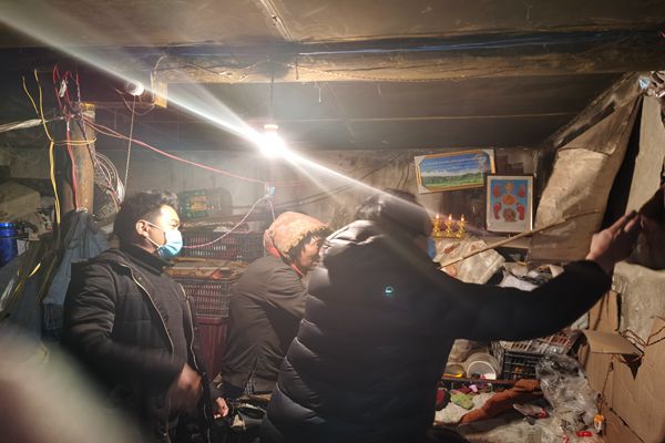 4月1日當(dāng)晚,長須貢瑪鄉(xiāng)紀(jì)委干部跟隨救援隊深入震中江瑪村等地開展災(zāi)情摸排和群眾救助工作,確保各類救災(zāi)物資及時發(fā)放到位。圖為長須貢瑪鄉(xiāng)紀(jì)檢監(jiān)察干部在受災(zāi)群眾臨時安置點參與救災(zāi)帳篷搭建工作。