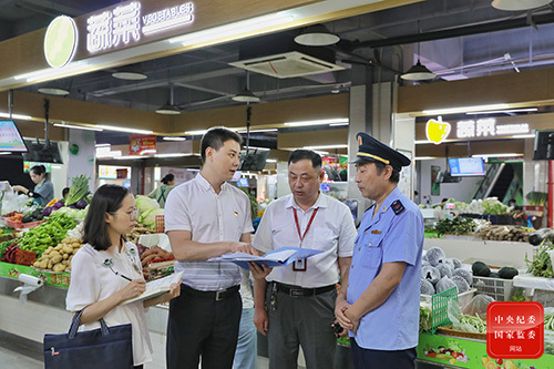 圖為南京市棲霞區(qū)紀(jì)委監(jiān)委針對“陽光惠民”監(jiān)管平臺上的預(yù)警信息,組織力量核查該區(qū)星級農(nóng)貿(mào)市場獎勵資金撥付方面的問題線索。