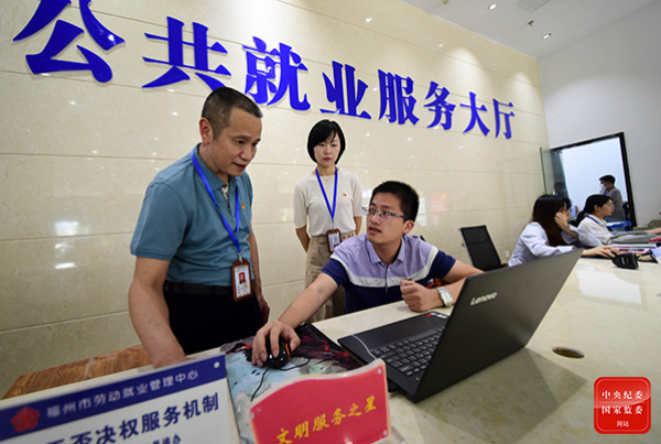 連日來(lái),福建省福州市紀(jì)委監(jiān)委駐市委組織部紀(jì)檢監(jiān)察組深入市人社局下屬單位、有關(guān)企業(yè)調(diào)研督查“穩(wěn)崗就業(yè)”工作推進(jìn)落實(shí)情況。圖為紀(jì)檢監(jiān)察組成員在福州市公共就業(yè)服務(wù)大廳,對(duì)相關(guān)工作進(jìn)行調(diào)研監(jiān)督。李德鄰 攝