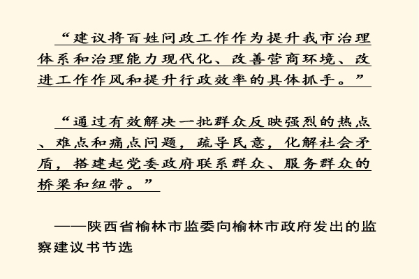 2019年12月6日,榆林市監(jiān)委制發(fā)的《關(guān)于解決百姓問政工作中存在問題的建議》的監(jiān)察建議書送達(dá)榆林市政府,并交于市長(zhǎng)本人。