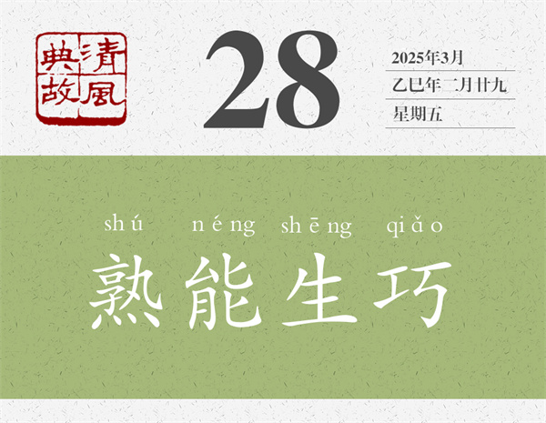 陳堯咨的射術(shù)不是不高,但用“無他,但手熟爾”來評價,給人的感覺是輕飄飄的;賣油翁往葫蘆里倒油的技術(shù)也不是不高,但賣油翁自己也說是“我亦無他,惟手熟爾”。在這個故事后面,歐陽修還說了一句話:“此與莊生所謂解牛、斫輪者何異?”“‌‌解牛”即“庖丁解牛”,“斫輪”即“輪扁斫輪”,前者即典故“游刃有余”之源,后者即典故“得心應(yīng)手”之源。意思是,這些并不神秘,都是“惟手熟爾”。后人即以“熟能生巧”為典,形容實踐多了,自然就能找到竅門,產(chǎn)生出巧妙的辦法,干起事來就能隨心所欲。董必武的詩《次稚天韻》:“會者不難終要學(xué),熟能生巧豈徒詩。”