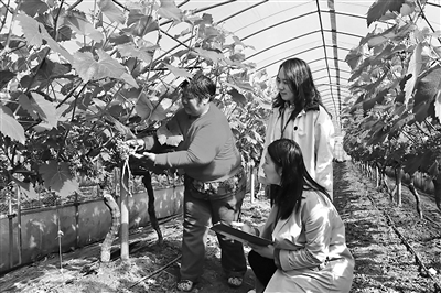 江蘇省東臺市紀(jì)委監(jiān)委開展護航農(nóng)村特色產(chǎn)業(yè)發(fā)展專項監(jiān)督,深入查糾鄉(xiāng)村振興項目資金監(jiān)管和涉農(nóng)補貼發(fā)放等方面存在的問題。圖為該市紀(jì)委監(jiān)委工作人員在葡萄種植大棚走訪了解相關(guān)情況。王茜 攝