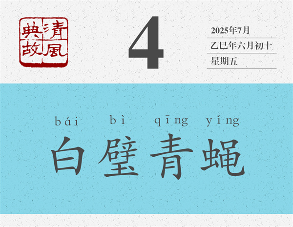 一顆老鼠屎,壞了一鍋湯。同樣,一點(diǎn)蒼蠅屎,也能使素練、白璧受到不可挽回的玷污。任何時(shí)候,都有好進(jìn)讒言的人,今天說這個(gè)人的壞話,明天說那個(gè)人的壞話,忙得不亦樂乎,其蠅營(yíng)狗茍、猥猥瑣瑣之行徑,讓人生厭,也讓人切齒。李白曾在《雪讒詩(shī)贈(zèng)友人》詩(shī)中質(zhì)問:“白璧何辜,青蠅屢前?”質(zhì)問不是終點(diǎn),更應(yīng)當(dāng)讓他們茍且行為大白于世,讓損害別人名聲、敗壞社會(huì)風(fēng)氣者,無地自容,無所遁形。