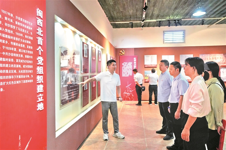 近年來,福建省泰寧縣紀委監(jiān)委運用紅色資源,通過參觀學習紅色場館、開展紅色故事宣講等方式,引導紀檢監(jiān)察干部賡續(xù)紅色血脈,傳承光榮傳統(tǒng)和優(yōu)良作風。圖為近日,該縣紀檢監(jiān)察干部到三明市沙縣區(qū)夏茂鎮(zhèn)紅色展廳開展學習。許林煒 攝