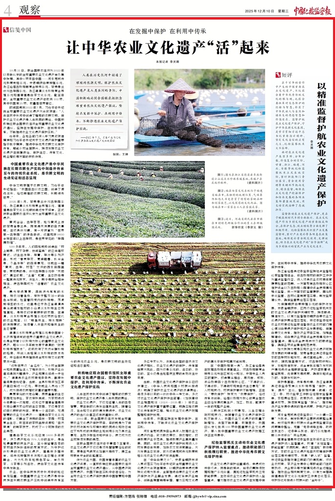 紀(jì)檢監(jiān)察機(jī)關(guān)主動(dòng)將農(nóng)業(yè)文化遺產(chǎn)保護(hù)納入監(jiān)督重點(diǎn),推動(dòng)職能部門積極履行職責(zé),推進(jìn)中華優(yōu)秀農(nóng)耕文化保護(hù)傳承
