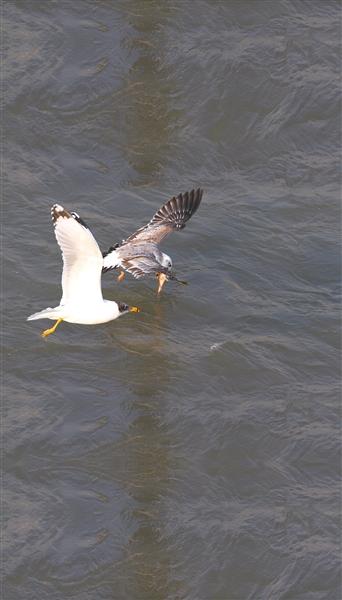 海鷗爭(zhēng)魚。張福昌2019年12月中旬?dāng)z于蘭州城關(guān)黃河大橋。