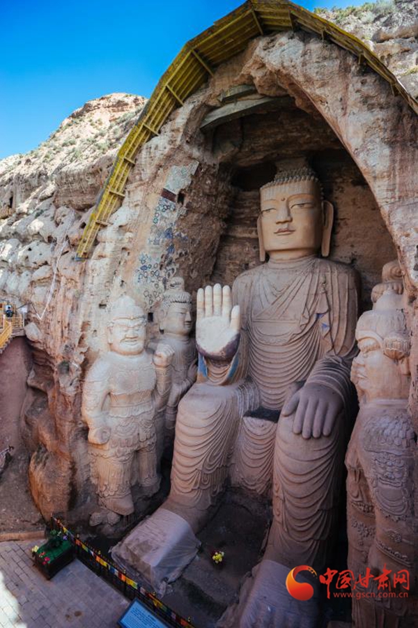 石窟藝術源于印度,隨佛教東傳,經新疆傳入河西。五涼時期,自張軌始,尊崇篤信佛法。北涼沮渠蒙遜,亦好佛法,在涼州南山興鑿石窟,以天梯山石窟為代表的“涼州模式”諸多石窟,先后在河西地區(qū)開鑿傳播,影響了中原石窟藝術風格,成為石窟藝術神圣的殿堂。(武威市文體廣電和旅游局供圖)