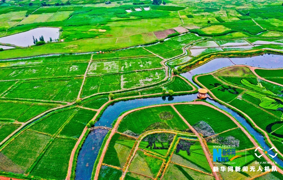 原標(biāo)題:【“飛閱”中國】甘肅張掖:稻田作畫“繪”風(fēng)景