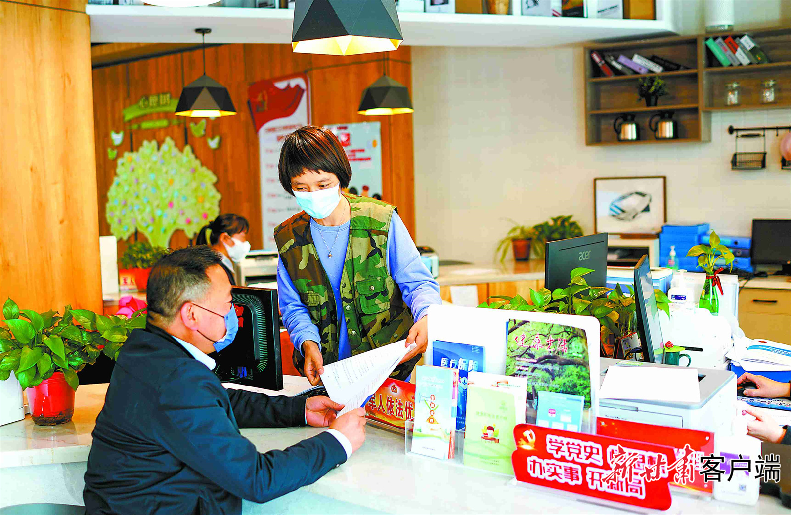 蘭州市城關(guān)區(qū)白銀路街道甘家巷社區(qū)全科受理臺上,社區(qū)工作人員熱情解答辦事群眾提出的問題。