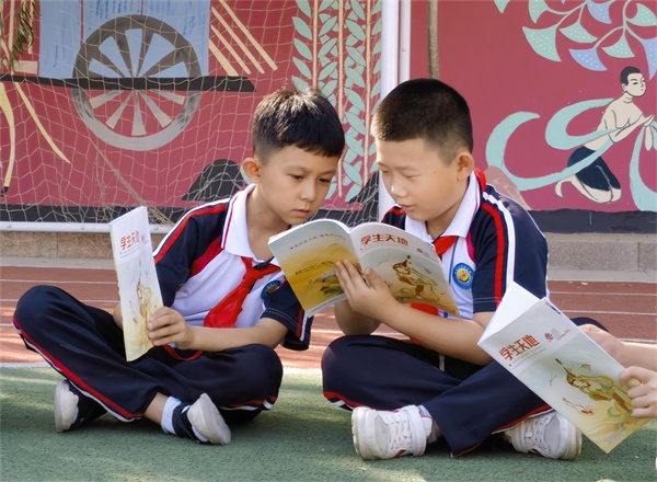 敦煌市南街小學學生在閱讀學生天地之《敦煌文化進校園》特刊 。敦煌市委宣傳部供圖