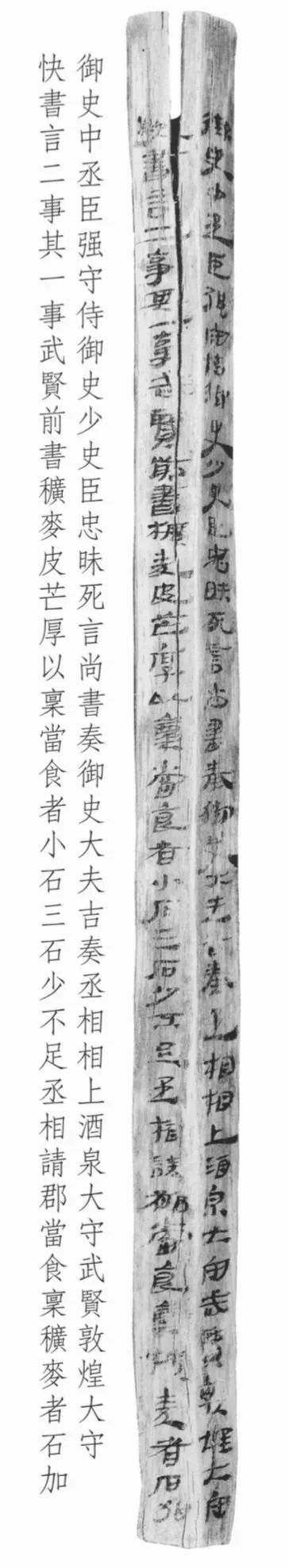 另據(jù)張德芳先生考證,此簡所言史實或與漢宣帝神爵年間對羌作戰(zhàn)有關。漢宣帝神爵元年(前61)西羌作亂,辛武賢被任命為破羌將軍,與敦煌太守快等發(fā)兵配合后將軍趙充國對羌作戰(zhàn),神爵二年(前60)羌事結束后辛武賢赴任酒泉太守。簡文中稱辛武賢為“酒泉太守”,或許是神爵二年(前60)羌事結束后,辛武賢在面對平定西羌戰(zhàn)爭過程中發(fā)現(xiàn)的一些弊端諸如糧食發(fā)放不足數(shù)等問題向朝廷提出改善的建議。
