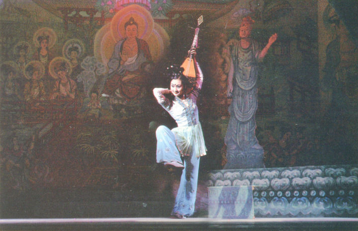 1980年,高金榮編纂了《敦煌舞教學(xué)大綱》,并于當(dāng)年招收了第一屆敦煌舞班學(xué)生。教學(xué)實踐中,她開創(chuàng)了包括呼吸、手姿、手臂、單腳形態(tài)和琵琶道具組合在內(nèi)的舞姿訓(xùn)練課,編導(dǎo)了《敦煌夢幻》《極樂敦煌》等組舞以及教學(xué)劇目《千手觀音》《妙音反彈》《大飛天》《歡騰伎樂》《莫高女神》等,再一次“活化”了敦煌壁畫,形成了完備的敦煌舞教學(xué)體系。