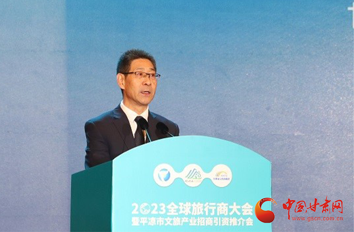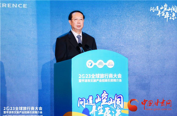 何效祖在致辭中說(shuō),平?jīng)鍪歉拭C向東開(kāi)放的“門戶”城市,是風(fēng)景宜人的旅游城市,是甘肅布局的文旅康養(yǎng)基地和支撐“一核三帶”區(qū)域發(fā)展格局中的重要支點(diǎn),擁有崆峒山、大云寺·王母宮、瑤池溫泉等眾多聞名遐邇的人文和自然景觀。今天,我們與平?jīng)鍪形姓?、中?guó)旅行社協(xié)會(huì)、甘肅公航旅集團(tuán)一道搭建平臺(tái),誠(chéng)邀各位嘉賓走進(jìn)甘肅、深入平?jīng)觯M織開(kāi)展宣傳推介、洽談合作、展示展銷、考察踩線等系列活動(dòng),就是要引導(dǎo)大家深度感知甘肅高質(zhì)量發(fā)展的強(qiáng)烈愿望,實(shí)地觸摸甘肅文旅如火如荼的生動(dòng)實(shí)踐,誠(chéng)懇表達(dá)隴原兒女“視企業(yè)家為最寶貴財(cái)富”的真誠(chéng)合作和赤誠(chéng)服務(wù)之心。我們衷心希望,廣大中外旅行商和文旅專家、文旅企業(yè)家以本次大會(huì)為契機(jī),加強(qiáng)交流互鑒,深化務(wù)實(shí)合作,加大在甘投資力度,組織更多游客到甘肅觀光旅游,帶動(dòng)更多優(yōu)質(zhì)文旅企業(yè)和項(xiàng)目落戶甘肅,合力譜寫甘肅文旅高質(zhì)量發(fā)展的嶄新篇章!