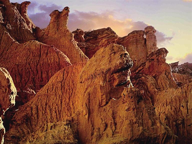 張掖土林地貌主要集中在該市肅南縣境內(nèi),平均海拔高度1700米左右,面積約20平方公里。土林發(fā)育齊全、類型多樣,從幼年時(shí)期的細(xì)溝土牙,到中青年期的圓盆土柱,直至成熟期的坡地殘柱,均有呈現(xiàn),完整地展示了土林地貌的形成與演化過程。