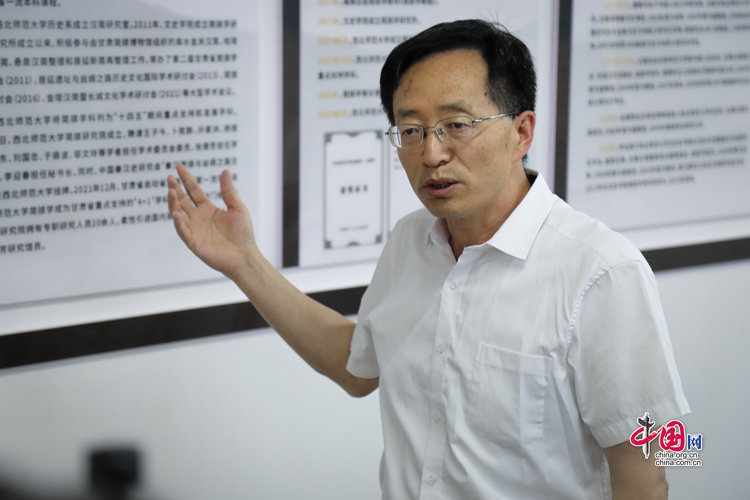 7月31日,西北師范大學(xué)歷史文化學(xué)院院長、博士生導(dǎo)師劉再聰向“簡牘中國”媒體團介紹簡牘學(xué)學(xué)科建設(shè)情況。中國網(wǎng)記者 鄭偉 攝