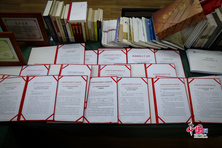 西北師范大學(xué)簡牘學(xué)學(xué)科建設(shè)部分資料(拍攝于7月31日)。中國網(wǎng)記者 鄭偉 攝