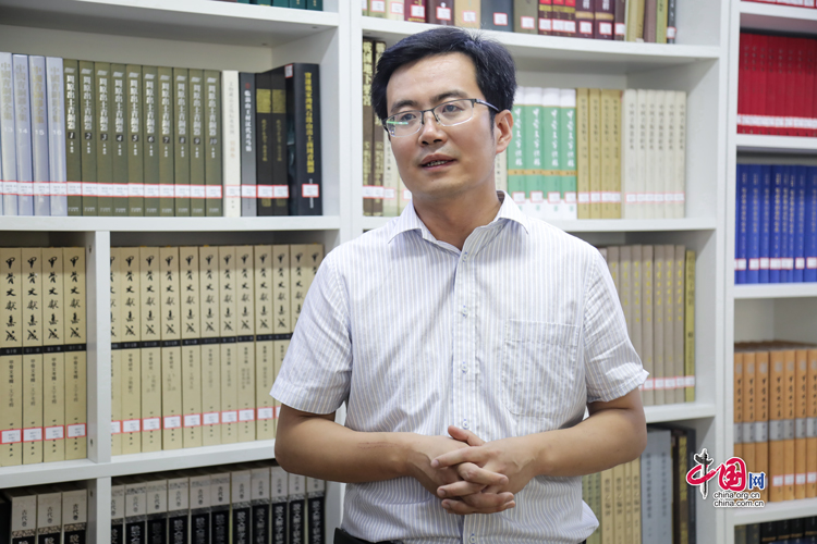 7月31日,西北師范大學(xué)歷史文化學(xué)院教授李迎春接受“簡牘中國”媒體團的采訪。中國網(wǎng)記者 鄭偉 攝
