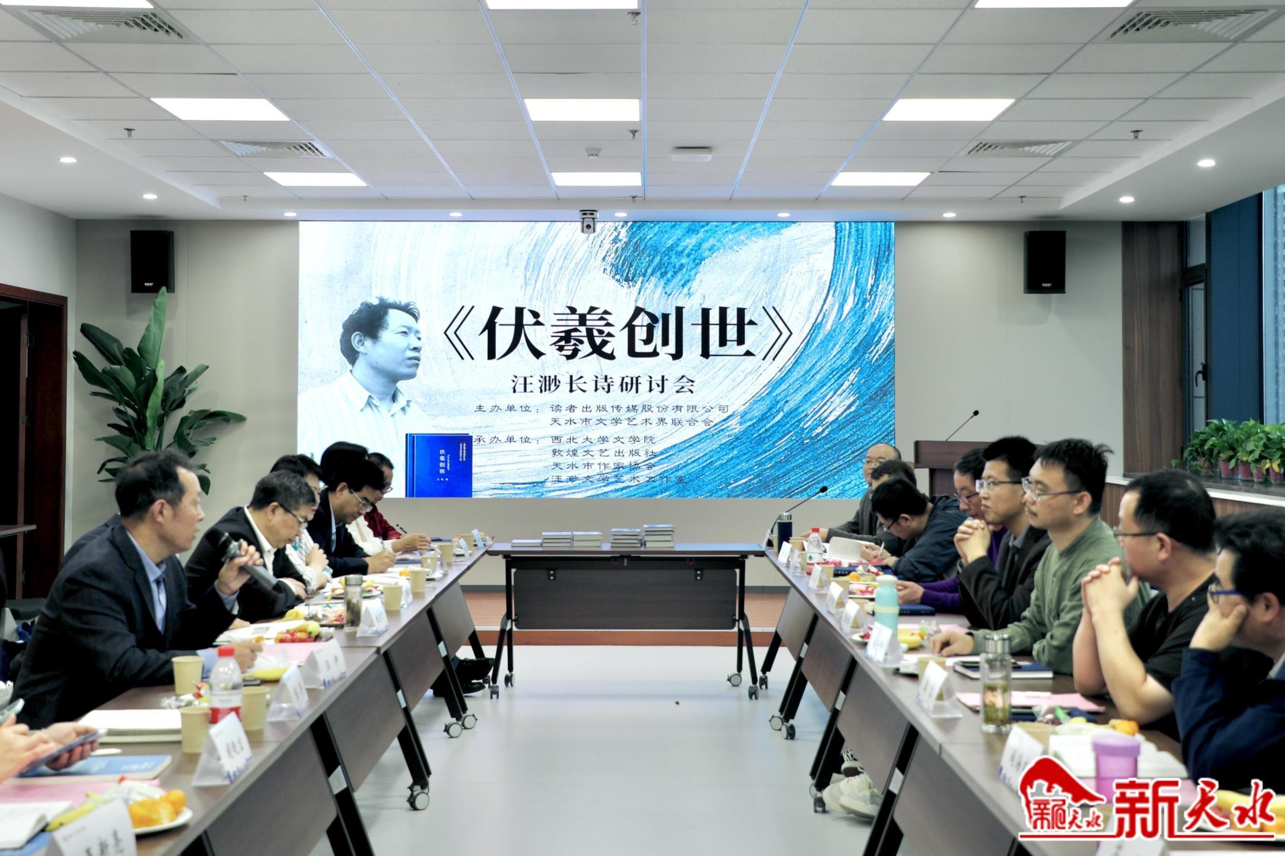 新天水訊【記者楊華 陳光毅】10月14日,天水詩人汪渺長詩《伏羲創(chuàng)世》研討會在西北大學(xué)文學(xué)院舉辦。本次研討會由讀者出版?zhèn)髅焦煞萦邢薰尽⑻焖形穆?lián)主辦,西北大學(xué)文學(xué)院、敦煌文藝出版社、天水市作協(xié)、汪渺文學(xué)藝術(shù)工作室承辦。