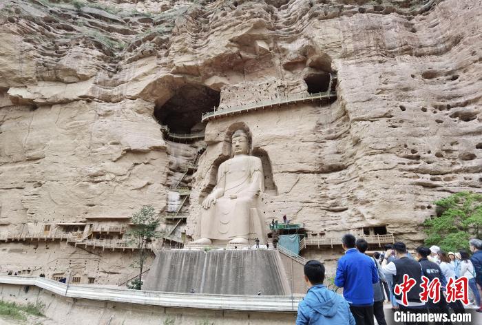游客到訪參觀甘肅炳靈寺石窟。中新社記者 馮志軍 攝