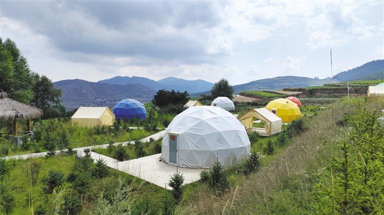 沿興隆山大道進(jìn)入滿目翠綠的原始森林,隨著彎曲的盤(pán)山公路走進(jìn)了哈班岔村時(shí),首先映入眼簾的便是層層遠(yuǎn)山間科技范十足的民宿太空艙和造型獨(dú)特的露營(yíng)帳篷,山坡上植被茂密,臨近山腳下的梯田色彩豐富,將一幅自然與人文相互映襯的鄉(xiāng)村畫(huà)卷展現(xiàn)在人們面前。