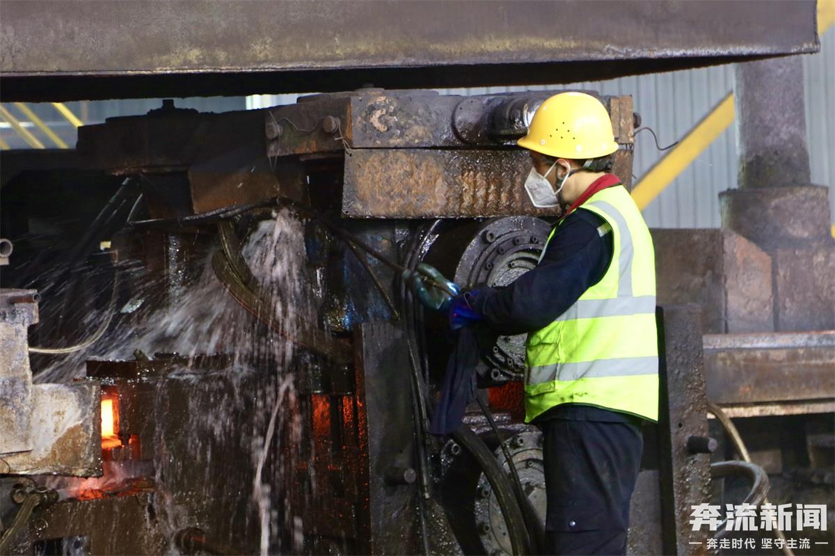 在飛濺的火花、軋機的轟鳴聲中,一塊塊火紅的鋼坯在軋鋼生產(chǎn)線上反復(fù)軋制后,銀灰色的鋼筋新鮮出爐……