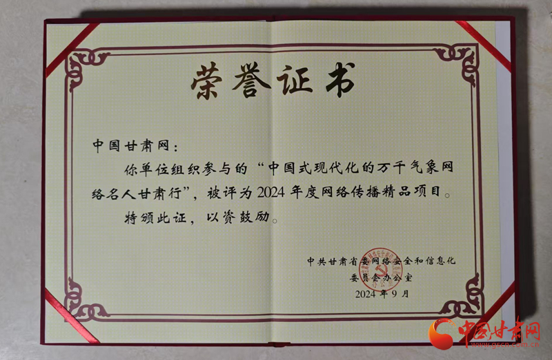 同時(shí),中國甘肅網(wǎng)參與的“我們的家園幸福美好新甘肅”和“中國式現(xiàn)代化的萬千氣象網(wǎng)絡(luò)名人甘肅行”兩個(gè)項(xiàng)目被評為2024年度網(wǎng)絡(luò)傳播精品項(xiàng)目。