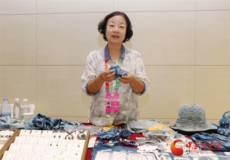 在第八屆進(jìn)博會(huì)的現(xiàn)場(chǎng),甘肅館以其獨(dú)特的人文底蘊(yùn)吸引了眾多目光。展館內(nèi),弧形山脈造型的背景,仿佛展現(xiàn)著甘肅的壯美風(fēng)光,而慶陽(yáng)香包、敦煌絲巾等精美展品,則如璀璨明珠,訴說(shuō)著甘肅的文化魅力。就在這其中,來(lái)自平?jīng)龅墓欧ㄋ{(lán)染技藝展臺(tái)格外引人注目,一件件藍(lán)染作品散發(fā)著獨(dú)特的草本氣息,向世界展示著非遺的獨(dú)特魅力,而這些作品的創(chuàng)作者,正是平?jīng)鏊{(lán)染技藝的市級(jí)非遺傳承人李梅。