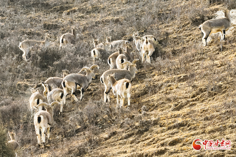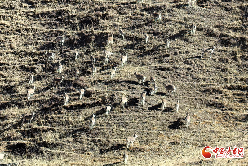 近日,民樂縣大河口自然保護站扁都口資源管護站人員于高海拔區(qū)域日常巡護時,邂逅一大群巖羊在山坡覓食、奔跑的珍貴場景,巖羊數(shù)量約50只。