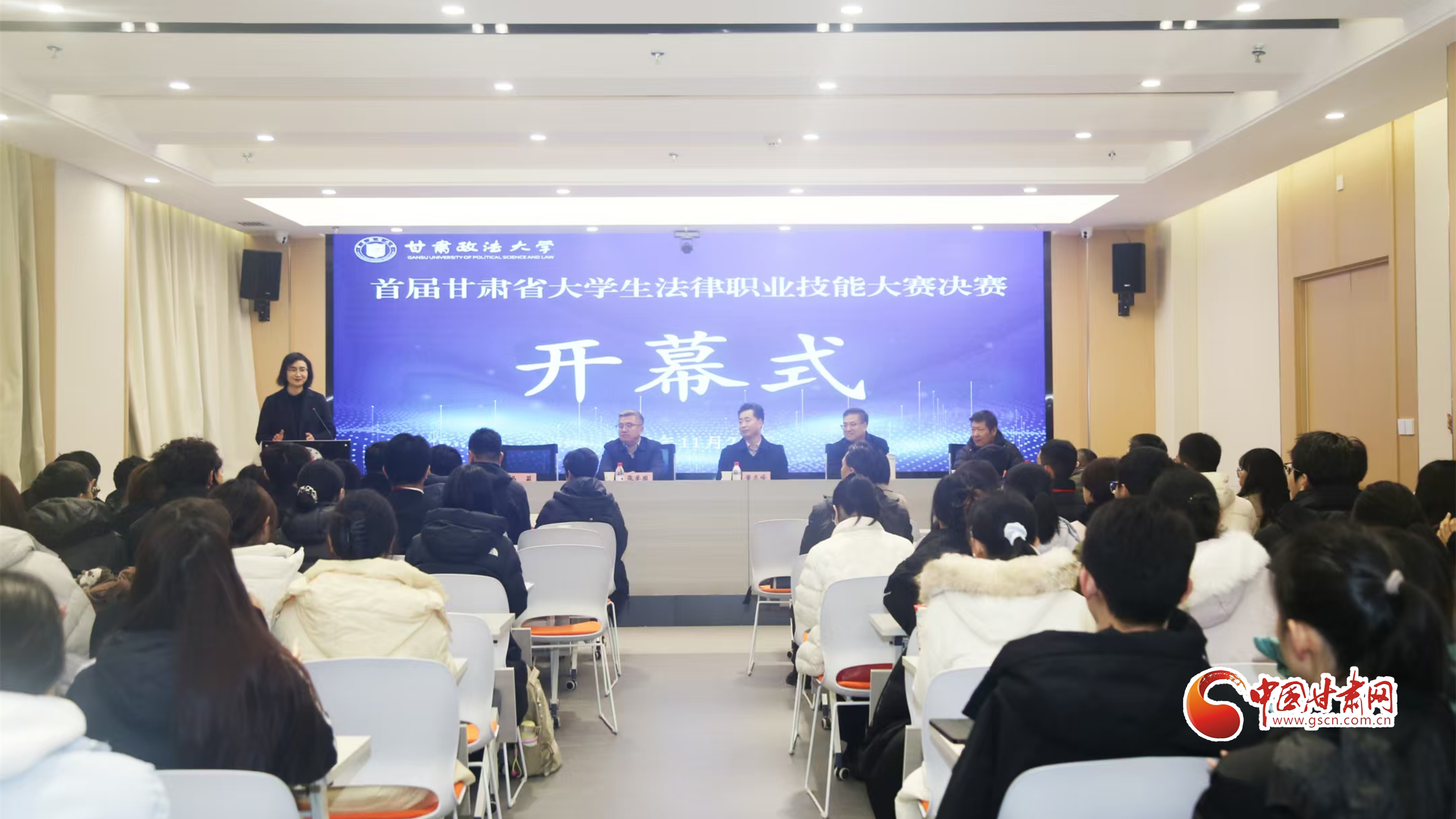 中國甘肅網(wǎng)11月22日訊(西北角·中國甘肅網(wǎng)記者 程?。?1月22日上午,首屆甘肅省大學(xué)生法律職業(yè)技能大賽決賽開幕式在甘肅政法大學(xué)舉行。來自蘭州大學(xué)等7所高校的48支賽隊(duì)、200余名師生齊聚一堂,共同開啟這場(chǎng)法治實(shí)務(wù)“大練兵”。