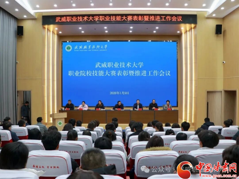 中國(guó)甘肅網(wǎng)1月11日訊(西北角·中國(guó)甘肅網(wǎng)記者 張振國(guó))1月9日,武威職業(yè)技術(shù)大學(xué)召開職業(yè)院校技能大賽表彰暨推進(jìn)工作會(huì)議。黨委書記王宏出席會(huì)議并講話。在家校領(lǐng)導(dǎo)班子成員、各學(xué)院(部)及職能部門負(fù)責(zé)人、獲獎(jiǎng)師生代表以及備戰(zhàn)2026年大賽的師生代表共同參會(huì)。校長(zhǎng)李海軍主持會(huì)議。