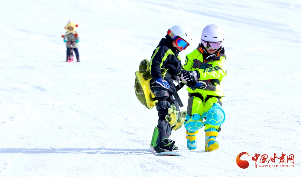 1月24日,在張掖肅南裕固族自治縣的康樂草原祁連山滑雪場,冰雪愛好者和游客攜孩子一同迎風馳雪,樂享冰雪運動的激情。他們在運動中強健體魄、磨煉意志,同時迎接即將到來的新春。