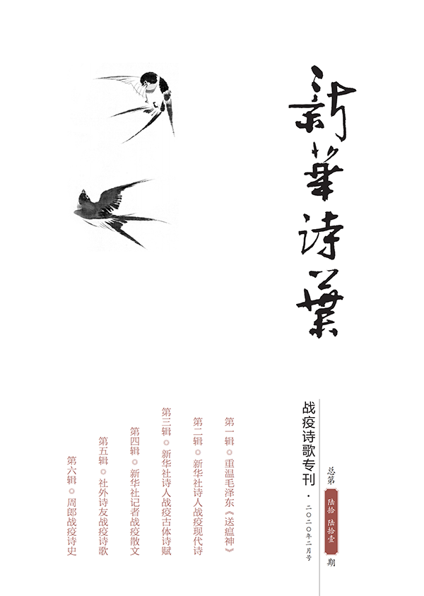 《戰(zhàn)疫詩歌專刊》是在新華社原副社長何東君,原社黨組成員、秘書長張錦的共同倡議策劃和組織指揮下,在較短時間內高效率、高質量完成的。這本??襁_140多頁,共由六大單元組成。其中,第一輯開篇重溫毛澤東《送瘟神》,由何東君撰文回顧新中國戰(zhàn)勝血吸蟲病的悲壯歷史,以期為今日抗擊疫情汲取戰(zhàn)天斗地的民族精神力量;第二、第三輯分別刊登新華社記者編輯們抗疫主題的現代詩和古體詩,風格或豪放雄渾,或沉郁含蓄;最后一輯是周郎戰(zhàn)疫詩史專輯,專門刊登新華社高級編輯周清印的180首原創(chuàng)抗疫題材詩詞,彰顯對中華詩史傳統(tǒng)基因的繼承創(chuàng)新。