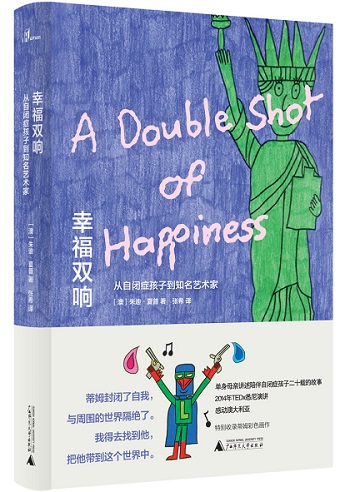 書名《幸福雙響》(A Double Shot of Happiness),來自蒂姆最愛的創(chuàng)作之一。朱迪用優(yōu)美且感人肺腑的筆觸,訴說著蒂姆漫長的人生旅程——從被診斷為重度自閉癥患者到嶄露頭角成為備受推崇的藝術(shù)家,以及一個能夠愛人與被愛的年輕人。