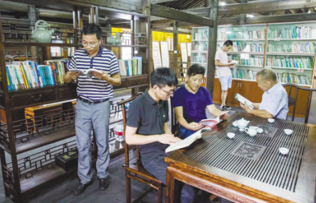 數(shù)字化建設(shè)之外,還有許多農(nóng)家書(shū)屋加速迭代升級(jí),農(nóng)家書(shū)屋+詩(shī)畫(huà)社、農(nóng)家書(shū)屋+民宿、農(nóng)家書(shū)屋+學(xué)校……農(nóng)村基礎(chǔ)閱讀設(shè)施不斷延伸著閱讀與致富的新功能?,F(xiàn)在,當(dāng)人們行走在浙江省慈溪市的田間地頭,有著年代感的文物古建筑、環(huán)境優(yōu)雅的茶館民宿、人氣頗高的田園農(nóng)莊等各具特色的閱讀空間吸人眼球。近年來(lái),浙江省慈溪市委探索推進(jìn)“鄉(xiāng)村書(shū)房”建設(shè),選擇將閱讀服務(wù)嵌入到鄉(xiāng)村的準(zhǔn)公共娛樂(lè)空間,一個(gè)個(gè)錯(cuò)落在慈溪田野鄉(xiāng)間的“鄉(xiāng)村書(shū)房”,創(chuàng)新拓展了農(nóng)村閱讀的服務(wù)空間,助推了文化傳播和共享。