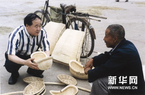 莫言與當地鄉(xiāng)親交流