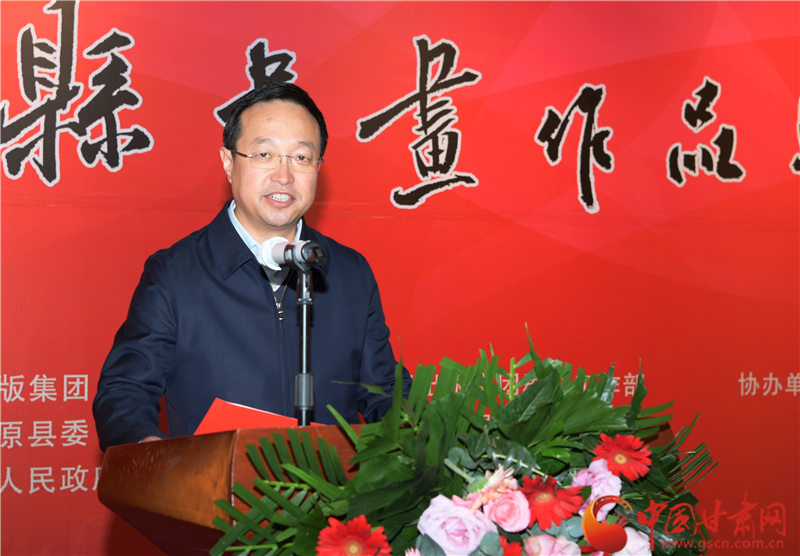 劉永升在致辭中說,鎮(zhèn)原是中國書法之鄉(xiāng),讀者是甘肅文化名片,企縣因扶貧而結(jié)緣,因文化而牽手。自2017年定點(diǎn)幫扶鎮(zhèn)原以來,讀者出版集團(tuán)著力實(shí)施了一批“看得見、摸得著、留得下、有成效”的好項(xiàng)目,探索出一條富有“讀者”特色的幫扶路子。特別是立足文化企業(yè)定位,堅持扶智扶志,通過開展勞動技能培訓(xùn)、幫助改善教育條件、推介宣傳地方資源、建設(shè)“讀者鄉(xiāng)村文化驛站”等一系列卓有成效的工作,切實(shí)打好“文化扶貧”牌,既堅定了廣大群眾戰(zhàn)勝貧困的信心和決心,更激發(fā)了貧困群眾依靠雙手、勤勞致富的積極性、主動性。此次與鎮(zhèn)原縣聯(lián)合舉辦書畫巡展,是開展文化扶貧、助力書香社會建設(shè)的務(wù)實(shí)之舉,也是提升“文化鎮(zhèn)原”影響力、加快地方文化產(chǎn)業(yè)發(fā)展的積極行動,更是提高貧困群眾文化素質(zhì)、振奮群眾精神風(fēng)貌的重要舉措。
