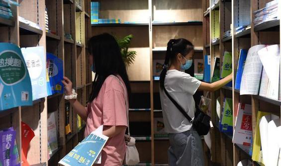 資料圖:圖為學生在書店里挑選練習題。 周毅 攝