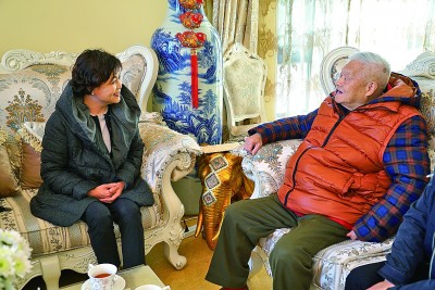 2017年,中國作協(xié)主席鐵凝(左)看望彭荊風。資料圖片