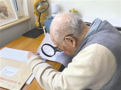 “我雖然歲數(shù)很大,身體不好,眼睛近瞎,但是我仍然堅持在北大養(yǎng)成的習(xí)慣,學(xué)習(xí),學(xué)習(xí)再學(xué)習(xí),眼睛看不清楚,我用放大鏡也要讀書。”說著,馬識途拿起了身邊的放大鏡示意。